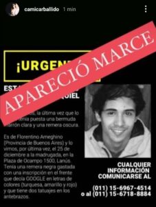 “Gente mi hermano Marce apareció, el ya está con mi familia”, informó al tiempo que agradeció a toda la gente que difundió la noticia y estuvo acompañando en las largas y pesadas horas que vivieron durante la ausencia.