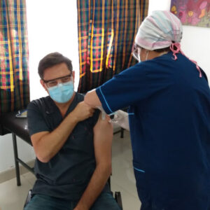 El primero en recibir la vacuna fue el Dr. Eduardo Bechara (foto portada).
