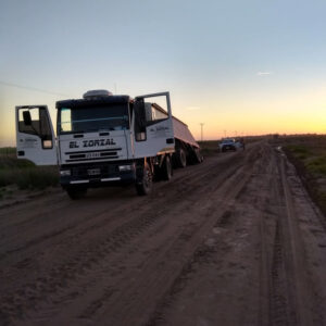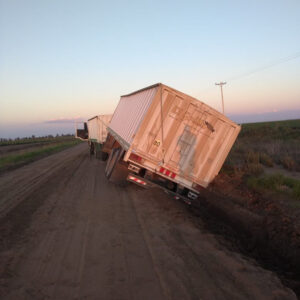 El acoplado que era tirado por un camión se despistó hacia el costado del camino quedando en la posición que se lo observa, con aparente riesgo de vuelco.