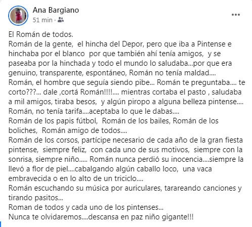 Román es otra víctima del Covid-19 pero no uno más, por eso la ciudad lo llora con el afecto y respeto que él mismo sembró a lo largo de su corta vida.