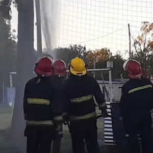 Dado que en General Pinto no hay estructuras de altura, salvo las plantas de silo, el cuartel no cuenta con vehículos adaptados para tal fin por lo que debieron emplear la máxima potencia de la bomba para alcanzar el foco.