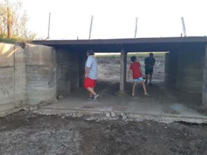 Una de las fotos muestra a Juan José y sus hijos caminando por debajo de un puente que se halla en el interior del campo, forma parte de una obra realizada por él mismo para que por allí puedan circular sin inconvenientes las máquinas agrícolas, nunca en años había lucido de este modo.