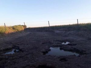 Apenas un poco de agua en huecos que se han formado, el resto es piso sólido, sin barro, lo que da la idea de la sequía que lo afecta, describió ante la consulta de Distrito Interior.