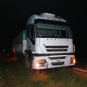 Dos vehículos son los involucrados, un camión de Quemú Quemú, conducido por Rodrigo Canelas, cargado con cereal procedente de Rosario y el otro, un camión de mediano porte de General Villegas, propiedad de Walter Lemos (comisionista) también procedente de Rosario colisionaron con al menos dos novillos. Ocurrió alrededor de las 00:00 hs.