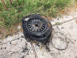 Farías habitualmente lo estaciona en la calle frente a su casa, esta mañana alrededor de las 6:00 arribó al domicilio y lo estacionó donde se lo aprecia, cerca de las 8:00 los vecinos lo despertaron con la novedad, su auto estaba prendido fuego.