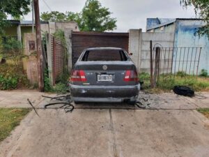 El auto, un Volkswagen Polo es propiedad de Jonathan Farías, se encontraba estacionado, entre el predio de la casa y la vereda en la calle Maipú entre Montevideo y Quilmes del barrio La Trocha.
