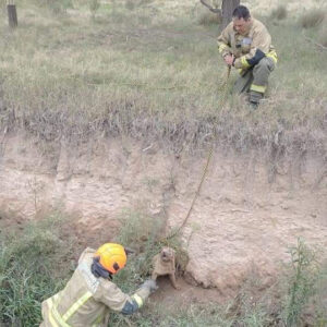 Esta tarde una dotacion de voluntarios en General Villegas acudió al llamado de vecinos que luego de intentar, sin éxito, rescatar un perro de un zanjon pidieron ayuda.