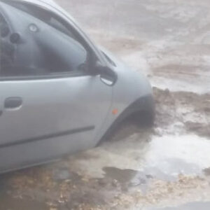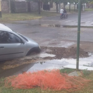 Finalmente el pozo de Azcuénaga y Pringles se tragó un auto