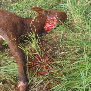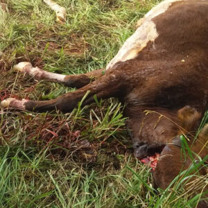 Esta mañana Horacio Volpe y su familia se sorprendieron con el hallazgo de un novillo de unos 160/200 kilos que había sido atacado y al que le habían sustraído los cuartos traseros.