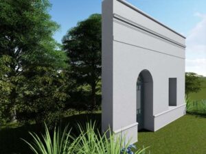 La obra, una especie de monumento que será el frente se le colocarán algunas aberturas rescatadas de la demolición, como la reja de la ventana y parte de una banderola ubicada en la parte superior de la puerta principal, estará ubicado junto al edificio del Museo Histórico Regional, en lo que será llamado precisamente «Paseo Manuel Puig».