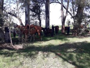 Unas 25 personas entre mujeres, hombres y niños partieron esta mañana alrededor de las 8:00 hs. desde la ciudad cabecera hacia Elordi en lo que es la primera cabalgata «Movimiento Campesino».