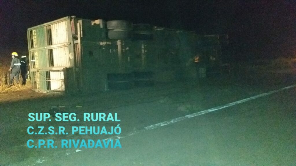 El camión que viajaba desde Las Flores hacia Trenel, La Pampa, tuvo inconvenientes con el acoplado doble piso que terminó volcado en la banquina con el saldo fatal detallado anteriormente.