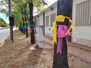 Dado el grave cuadro que atraviesa toda la sociedad villeguense por el Covid, desde el establecimiento se propuso que cada familia en cualquier momento del día colocara en los árboles que rodean a la escuela un moño de friselina, se tomaran una foto y la compartieran en el grupo, con la idea seguramente de publicar todas a manera de festejo.