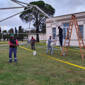 La carpa es estructural de unos 40 metros por 15. Se está armando en el predio que se encuentra frente a la guardia, al lado del Ceat.