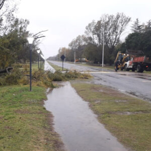 Esta madrugada las fuertes ráfagas provocaron la caída de ramas y algunos árboles, como en este caso en el acceso Centenario donde un árbol cedió al viento, obstruyendo la senda peatonal. Esta mañana personal municipal se disponía a su retiro liberando el paso.