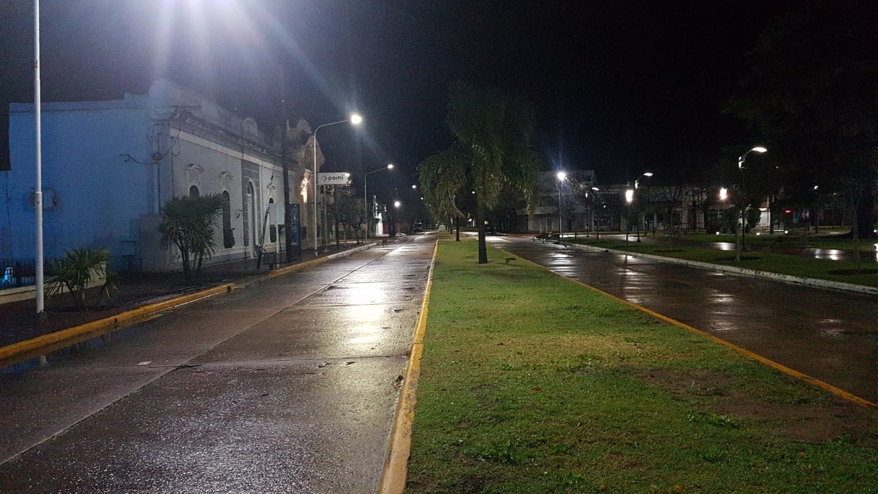 En el primer día del confinamiento por 9 días la ciudad cabecera luce totalmente despoblada a las 20:30 hs. momento en que un lector de Distrito Interior tomó las imágenes.