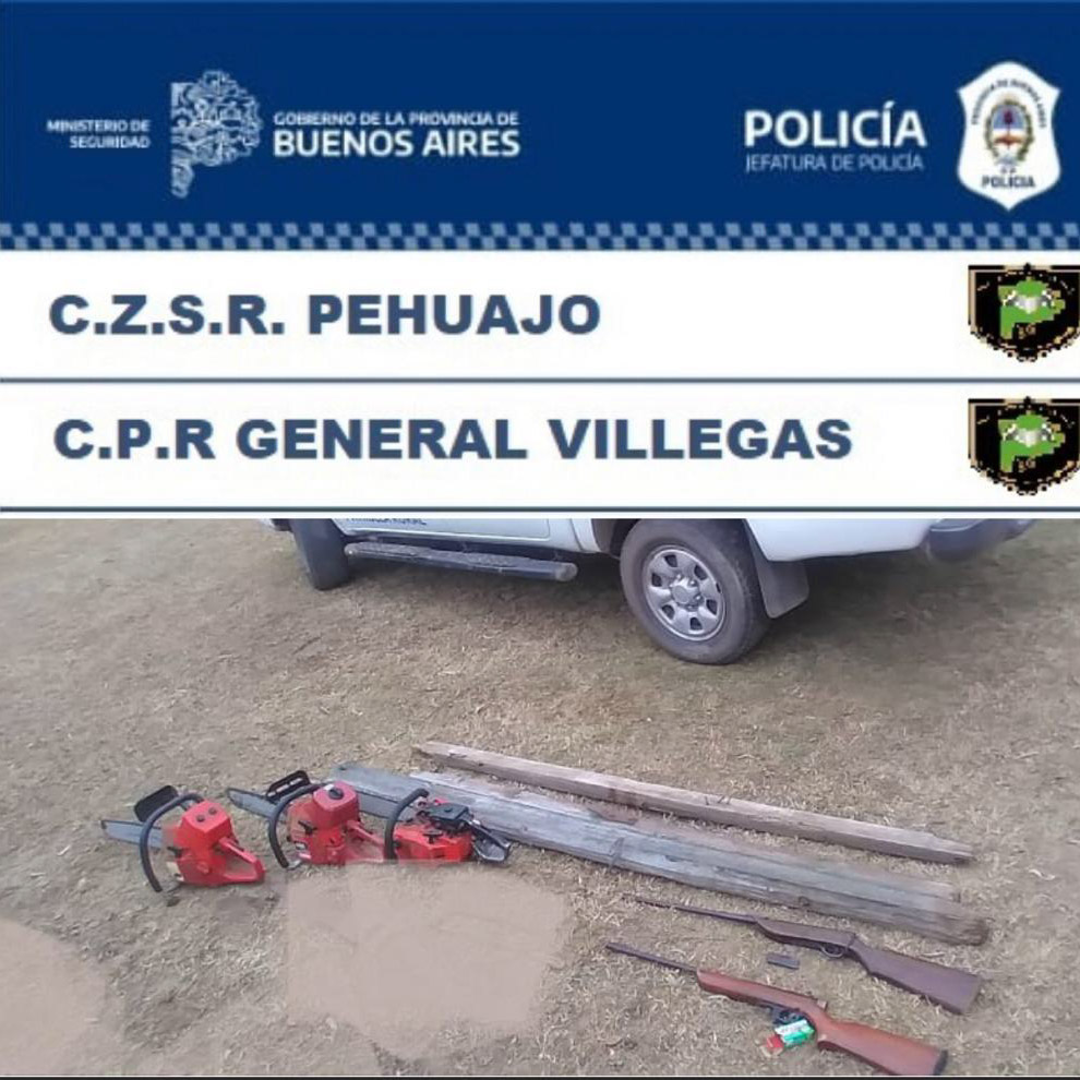 En dos procedimientos llevados a cabo recientemente, la Patrulla Rural secuestró carabina marca Mahely, serie 102252, calibre 22 mm junto a 4 proyectiles, del mismo calibre marca AO, motosierra Shindawa, roja, modelo 488, Nro. 20004430, 48 cm, motosierra marca Shindawa, roja, modelo Just, 50 cm, Motosierra marca Shindawa, roja, modelo Pampero, Nro. 3090946, 60 cm, carabina marca Rubriertra, calibre 22mm.
