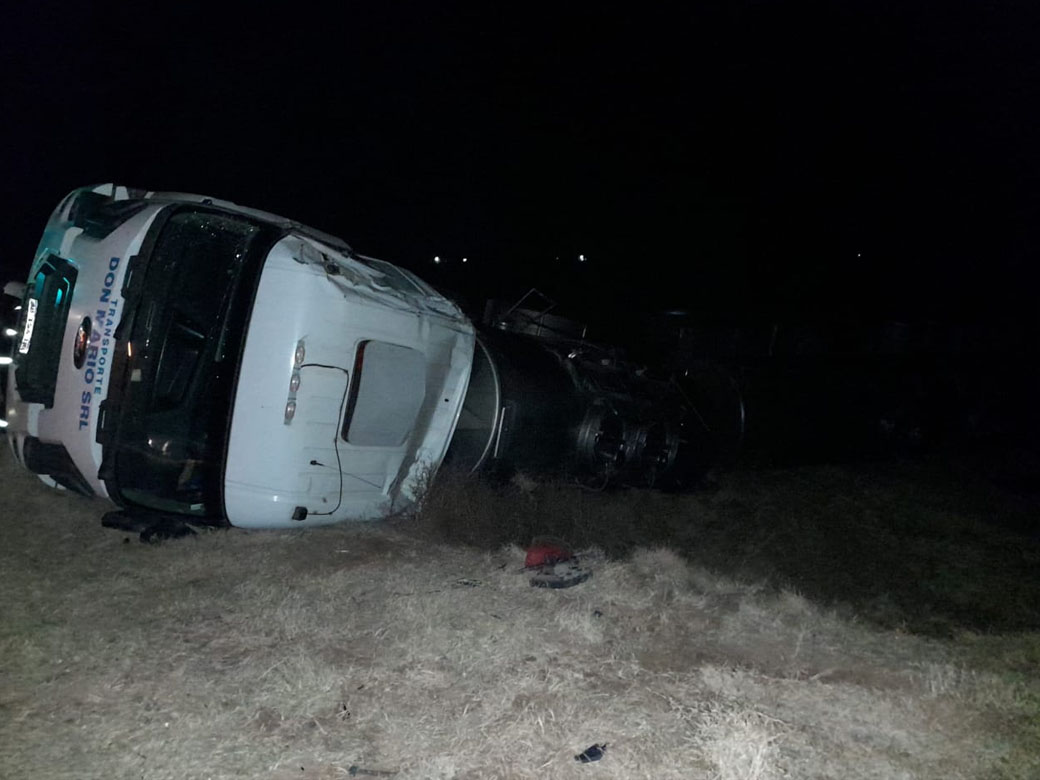El rodado, un Ford Cargo equipado para el traslado de leche, perteneciente a la empresa Don Mario S.R.L. de Trenque Lauquen, volcó cuando transitaba en dirección Charlone – Bunge en una de las curvas.