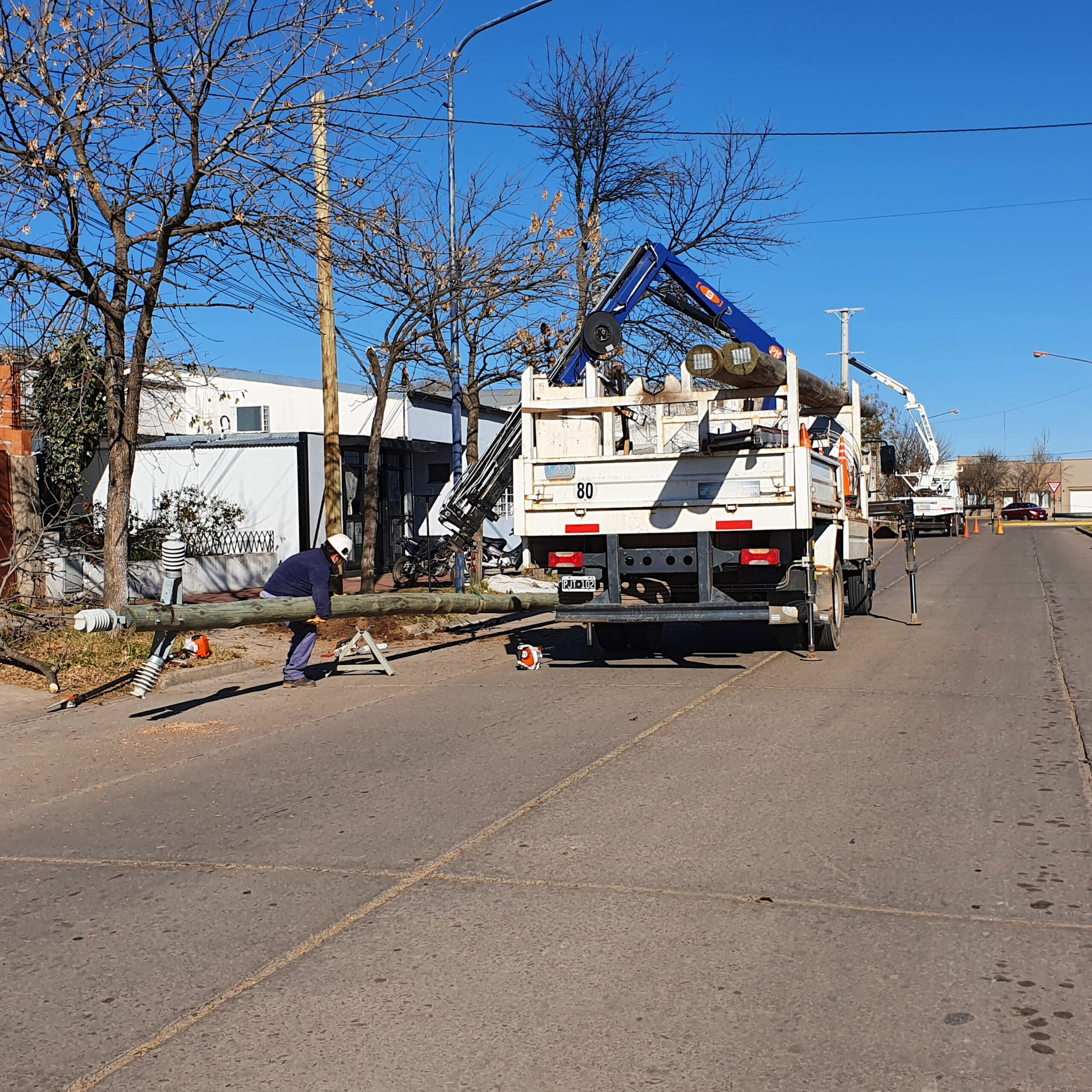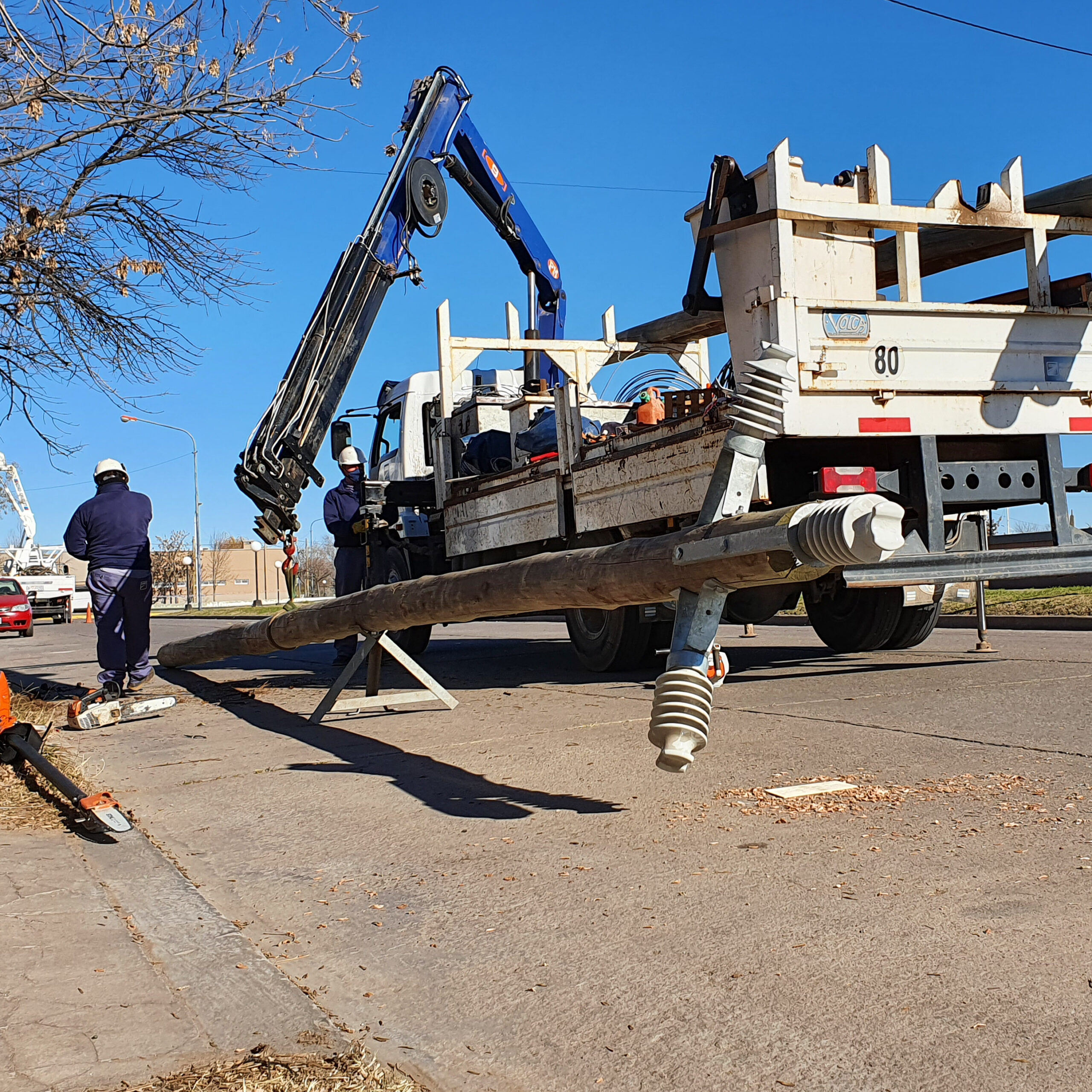 Ante la consulta los operarios informaron que se está colocando alli una nueva línea de media tensión que mejorará el servicio para ese sector de la ciudad.