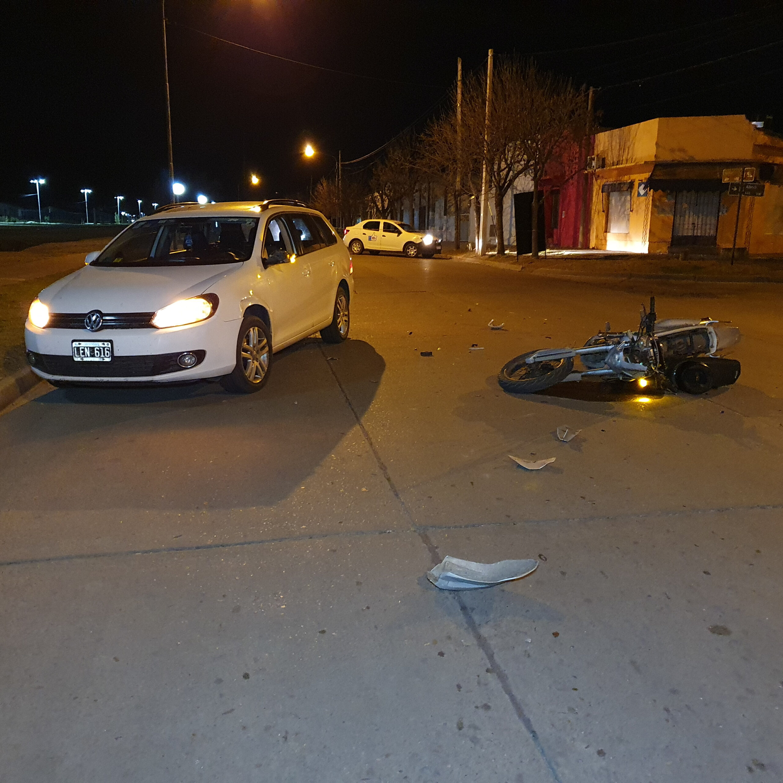 Los vehículos involucrados son un Vento Variant y una moto Beta 200 cc. que circulaban por Alvear, ambos hacia Roca.