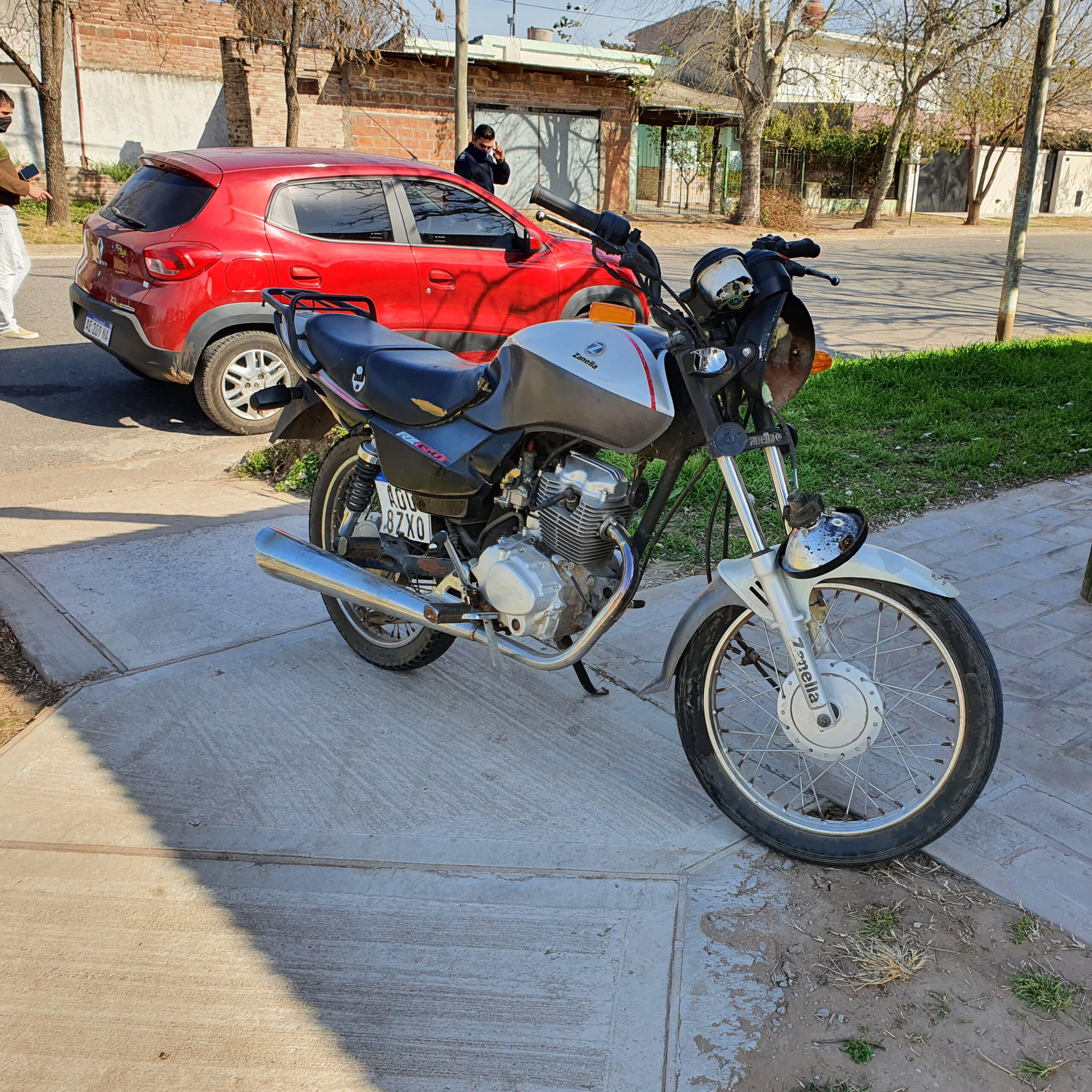 Esta tarde 14:00 hs. una moto Zanella 150 cc. que circulaba por Arrnales desde Chassaing Sur, en sentido contrario a la mano, impactó en el lateral izquierdo contra un Renaul Kwid que lo hacía por De Giorgi.