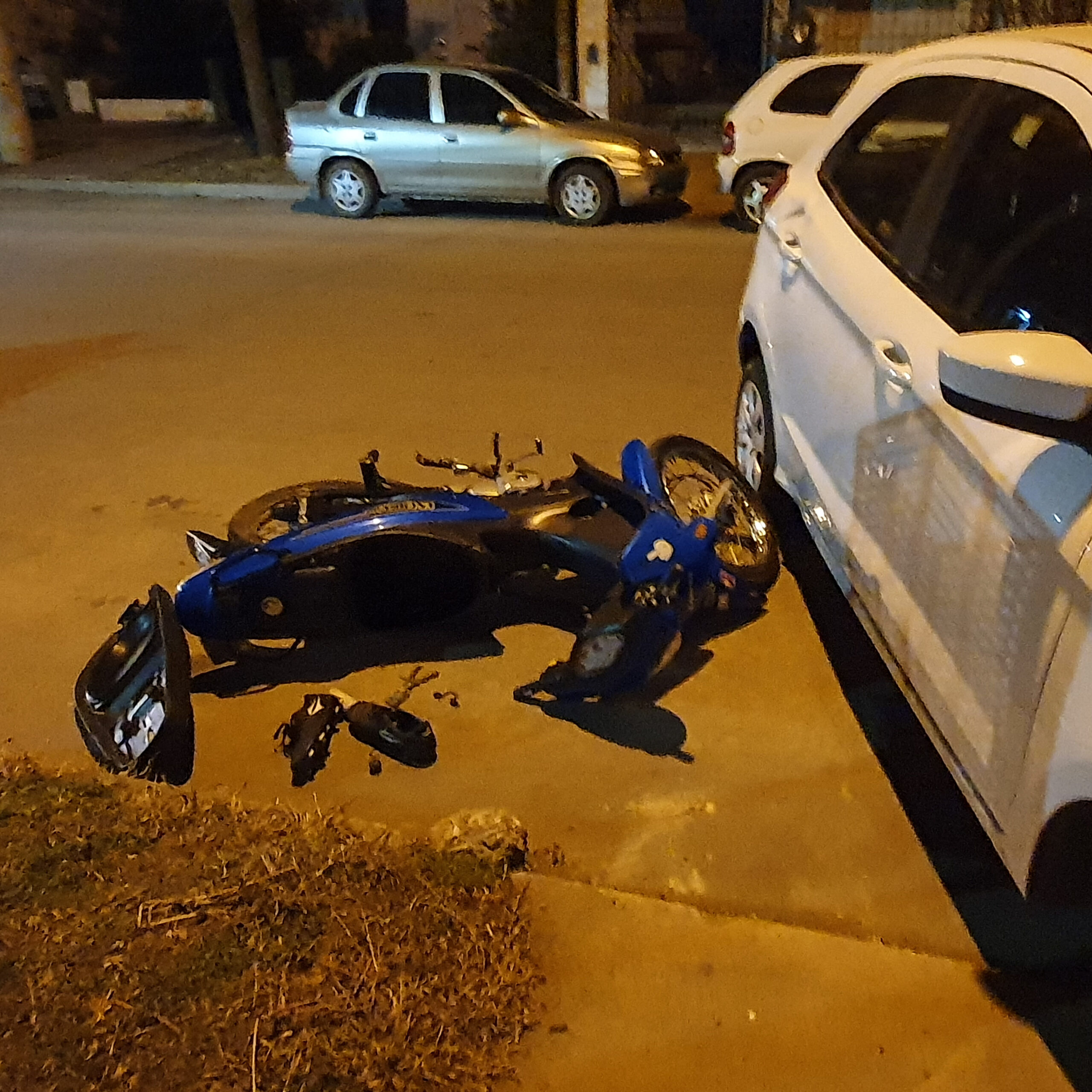 En esas condiciones el rodado menor impactó contra el lateral del auto, a la altura de la puerta trasera, provocando la caída del motociclista que quedó en el suelo, siendo asistido en principio por vecinos hasta la llegada del SAME que lo trasladó al hospital.