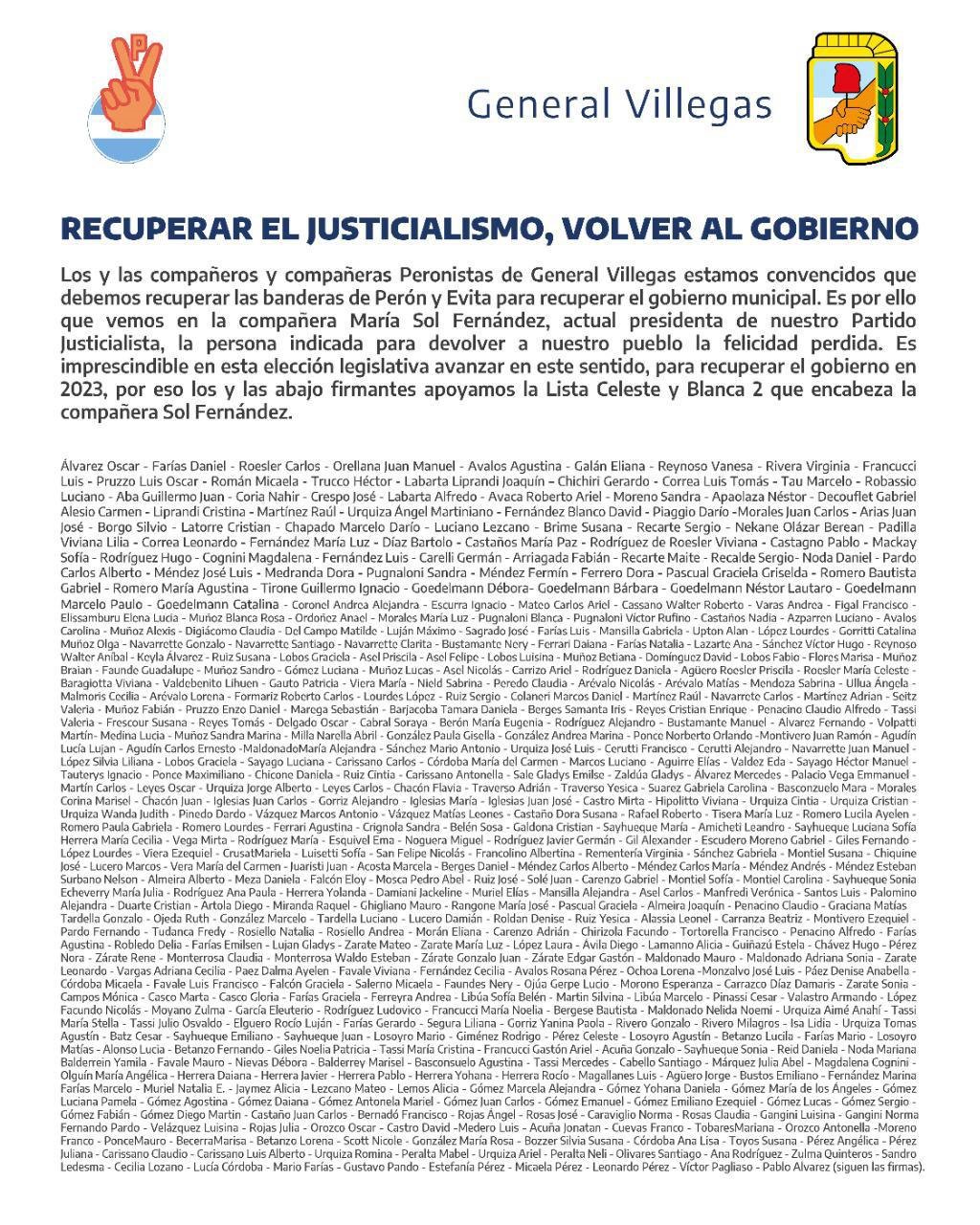 * Las firmas en apoyo a la Lista que encabezan Fernandez y Chichiri