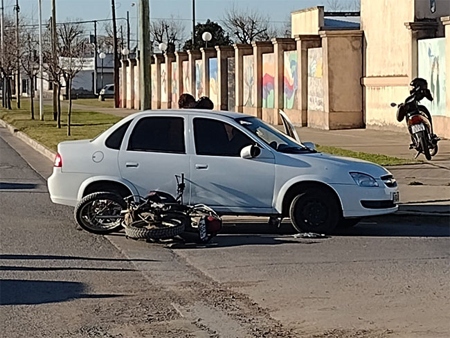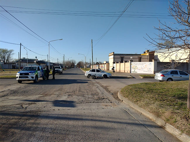 Auto y moto colisionaron en el ingreso a la guardia del hospital de General Villegas, una de las conductoras resultó con fractura