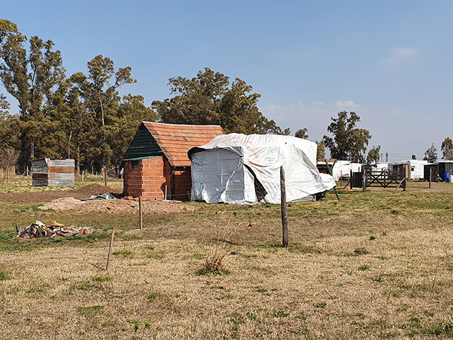 El predio de 10 hectáreas cuenta actualmente con unas 75 precarias viviendas en las que vivien unas 200 personas, muchas de ellas madres solas con sus hijos y también familias que expulsadas del sistema convencional de alquileres encontraron en este lugar una posibilidad de continuar con sus vidas.