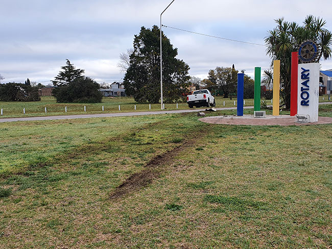 Una camioneta pasó de largo en la entrada a Villegas y rompió el monolito del Rotary