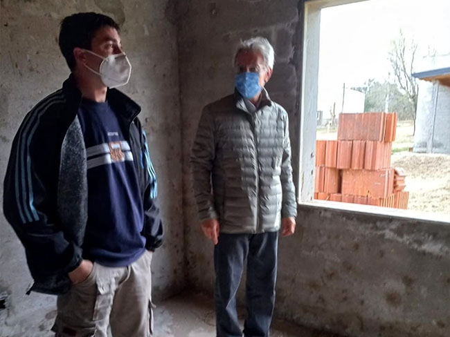 El precandidato que encabeza la Lista 4 del Frente de Todos acompañado por algunos sus compañeros visitó la localidad para reunirse con los adjudicatarios de las viviendas que aguardan la culminación y entrega de las mismas.