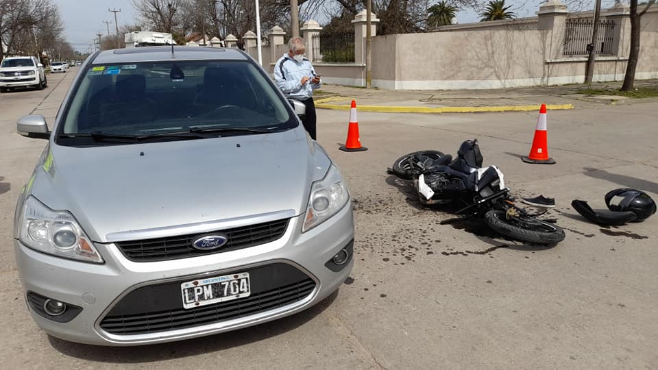 Gimenez se sorprendió con la aparición del otro vehículo al que chocó a la altura de la puerta delantera del lateral izquierdo volando hacia el otro lado del auto. La moto, una Rawser de mediana cilindrada quedó destruida.