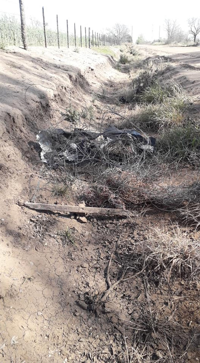 Flavio Arriba, es un vecino de la localidad perteneciente al distrito de General Pinto que esta mañana se encontró con este desagradable panorama, deshechos de campo arrojados en una cuneta cercana a la Ruta 188, en el camino a El Porvenir, a metros de las vías del Ferrocarril.