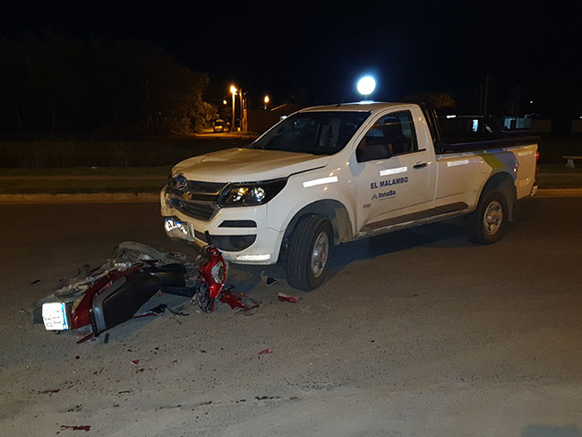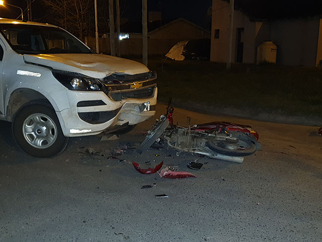 El hecho se produjo alrededor de las 20:00 hs. cuando la camioneta, una S10 cabina simple perteneciente a una empresa local que circulaba proveniente de la Av. Chassaing Sur intentaba doblar hacia la izquierda para tomar la calle batalla del Campichuelo, en ese momento, la moto, una 110 cc, avanzaba en sentido contrario.
