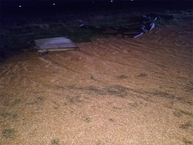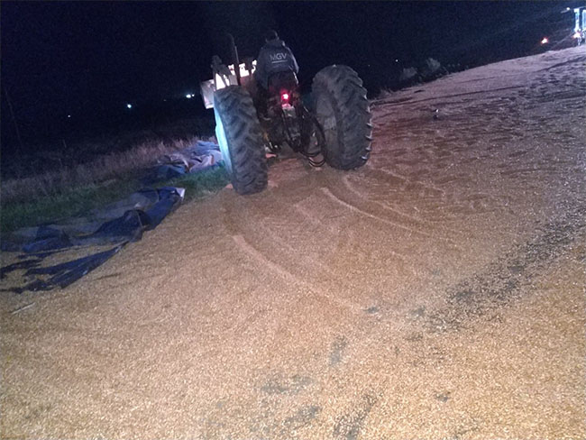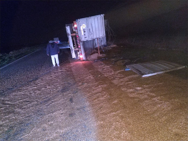 Vuelco y derrame de cereal en la ruta entre Coronel Charlone y Emilio V. Bunge
