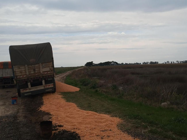 El tramo conocido como La Elisa fue el escenario para el despiste y posterior caída del cereal que transportaba como consecuencia de la rotura de uno de los laterales.
