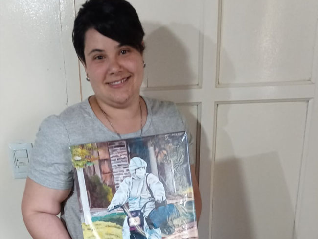 «La foto» de la pandemia se convirtió en un cuadro pintado y luego en un regalo sorpresa entregado en mano a la protagonista