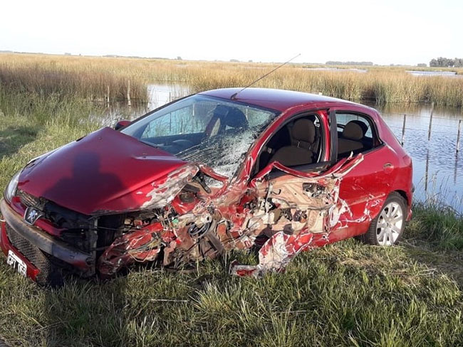 Gallego logró maniobrar cuando advirtió que el auto se dirigía directamente hacia el camión, evitando la colisión frontal. El Peugeot entonces, dio contra las ruedas «rebotando» hacia la banquina evitando lo que pudo ser un siniestro fatal. A bordo iban 5 personas.