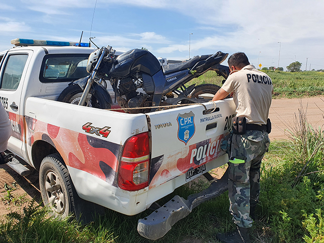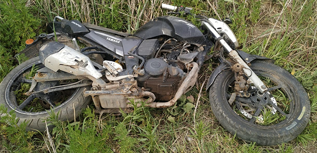 Esta mañana una persona que bajó desde la ruta hacia la ciudad por el camino que conduce a La Lucila y la cancha del club Sportivo encontró el rodado, una Yamaha FZ 160 cc. color negra abandonada, tirada contra un montículo de tierra, entre las malezas.