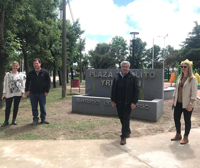 El Intendente Eduardo Campana junto a la Jefa de Gabinete, Marina Justo, la Directora de Obras Públicas, Norma Amilibia, la directora de Desarrollo Social, Romina Dominguez Carvalho, el concejal Ignacio García y la Directora del Jardín de Infantes Nº 917 Silvia Moreno, recorrieron este martes 2 de noviembre la nueva plaza “Hipólito Yrigoyen” del Barrio Centenario en ciudad cabecera.