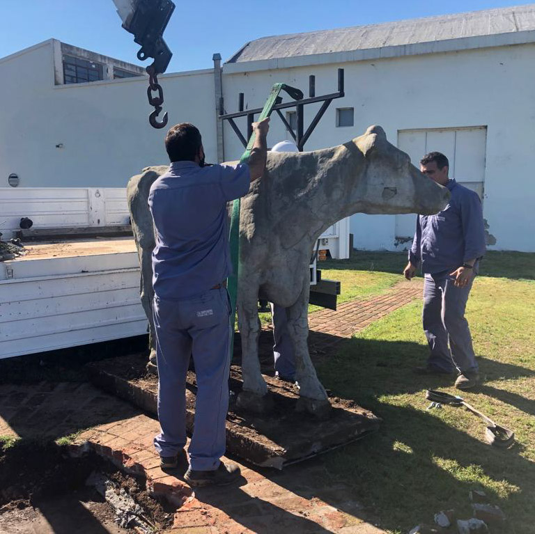 Coronel Charlone: esta mañana fue retirado el monumento a la vaca
