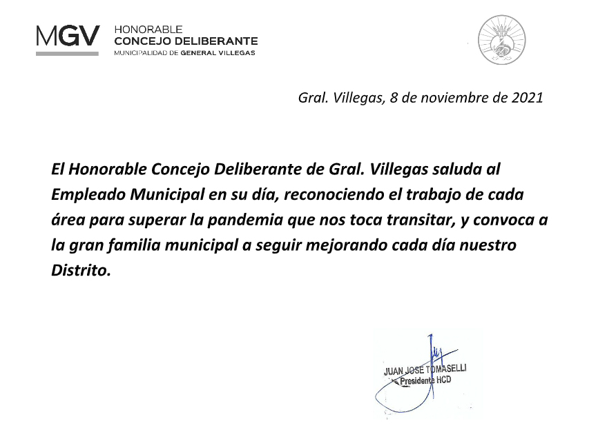 En el Día del Trabajador Municipal, el HCD General Villegas reconoce su trabajo con un saludo