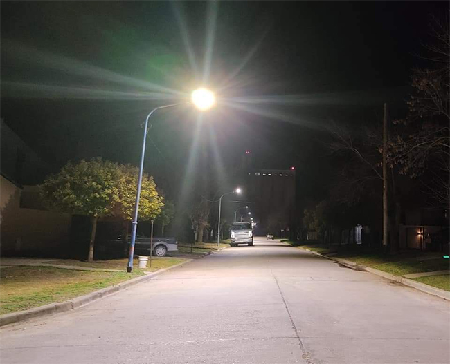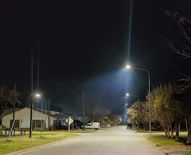 La obra quedó concluida en su totalidad y ya alumbra a todo el casco urbano de la localidad perteneciente al partido de General Pinto con la nueva tecnología.