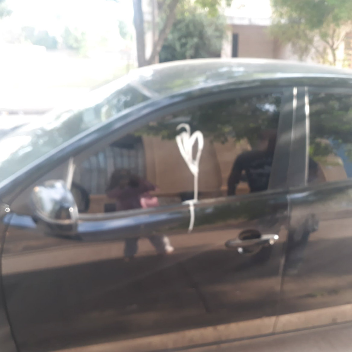 Esta mañana los propietarios de este automóvil Kia Cerato fueron sorprendidos cuando encontraron que en una de las puertas habían dibujado un corazón con pintura sintética blanca.