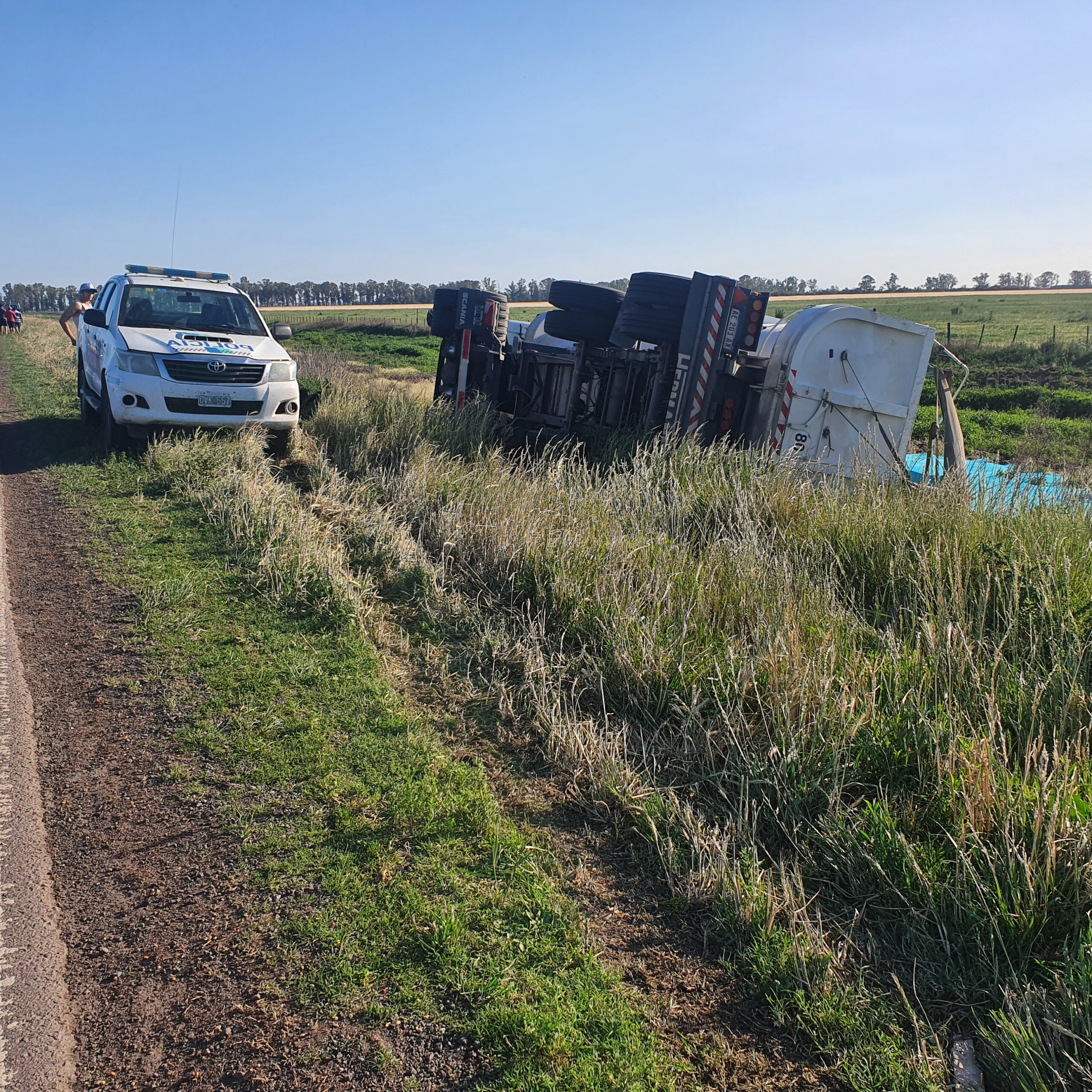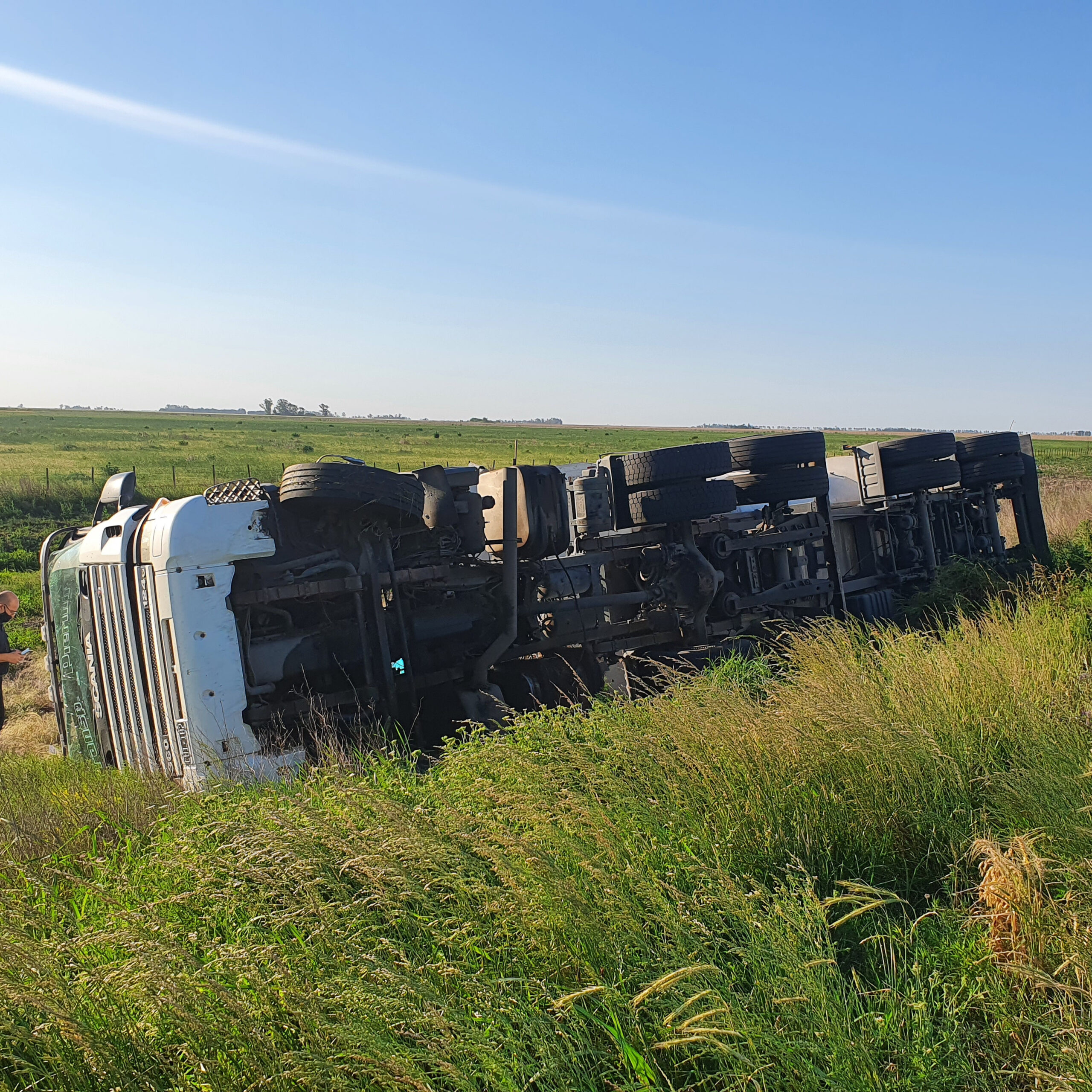 En tarde de este viernes cerca de las 17:30 hs. un camión marca Scania que tiraba una batea cargada con urea volcó luego de maniobrar para evitar chocar a un tractor