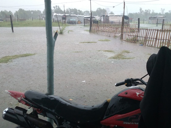 La lluvia caída, pasadas las 15:30 supera los 100 milímetros, afectando seriamente a diferentes puntos de la ciudad, el referido, sin dudas es uno de los más vulnerables junto al barrio Ex Quinta Migliore.
