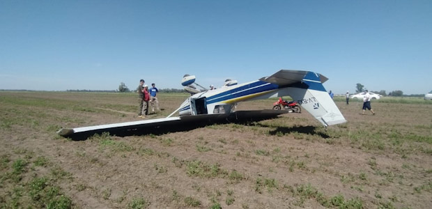 Al aterrizar el avión se clavó, ya que lo hizo en un terreno de tierra arada – al costado de la pista-, y se dio vuelta quedando con las ruedas para arribas.