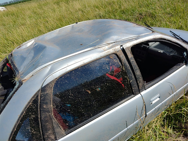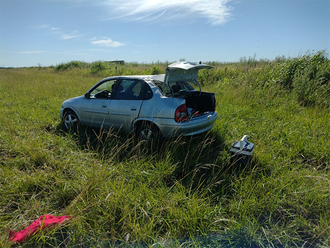 El automóvil, un Chevrolet Corsa circulaba por la Ruta 188 cuando a la altura de la curva de Moores, distantes a unos 5 kilómetros de la ciudad de General Villegas, se despistó, volcando en la banquina.