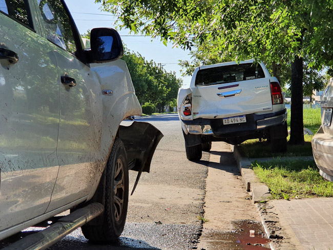 Una Volkswagen Amarok que transitaba por calle Larrea entre Pringles y Pueyrredón impactó contra una Toyota Hilux que se encontraba estacionada sobre la mano derecha.