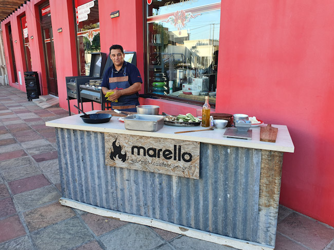 La firma oriunda de Cañada Seca está cumpliendo hoy dos años de vida comercial en la ciudad cabecera y buscaron una manera original para festejarlo; así es que en la esquina de Arenales y Alberti el cocinero Luis Monti se encuentra cocinado en vivo y con invitación abierta al público.